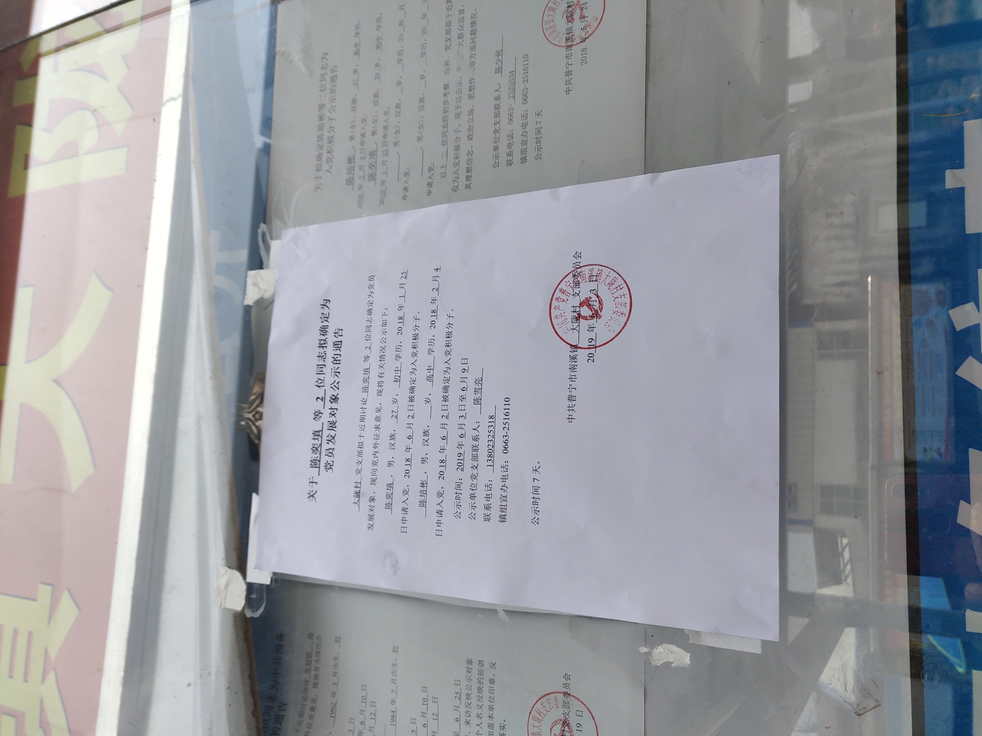 关于陈奕填等2位同志拟确定为党员发展对象公示的通告