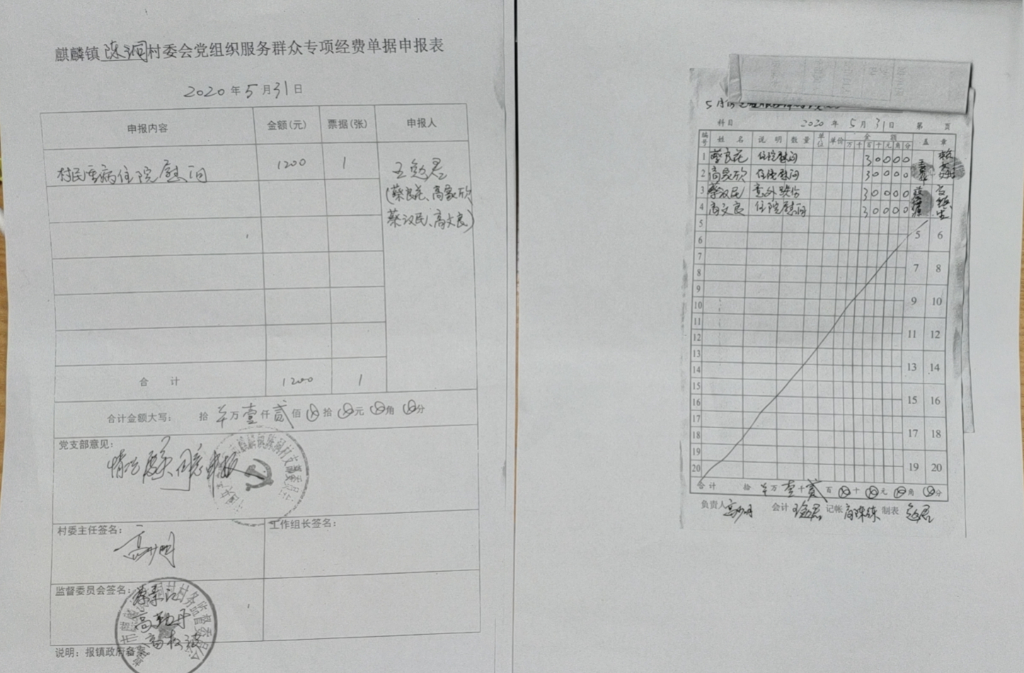 2020年5月党组织服务群众经费