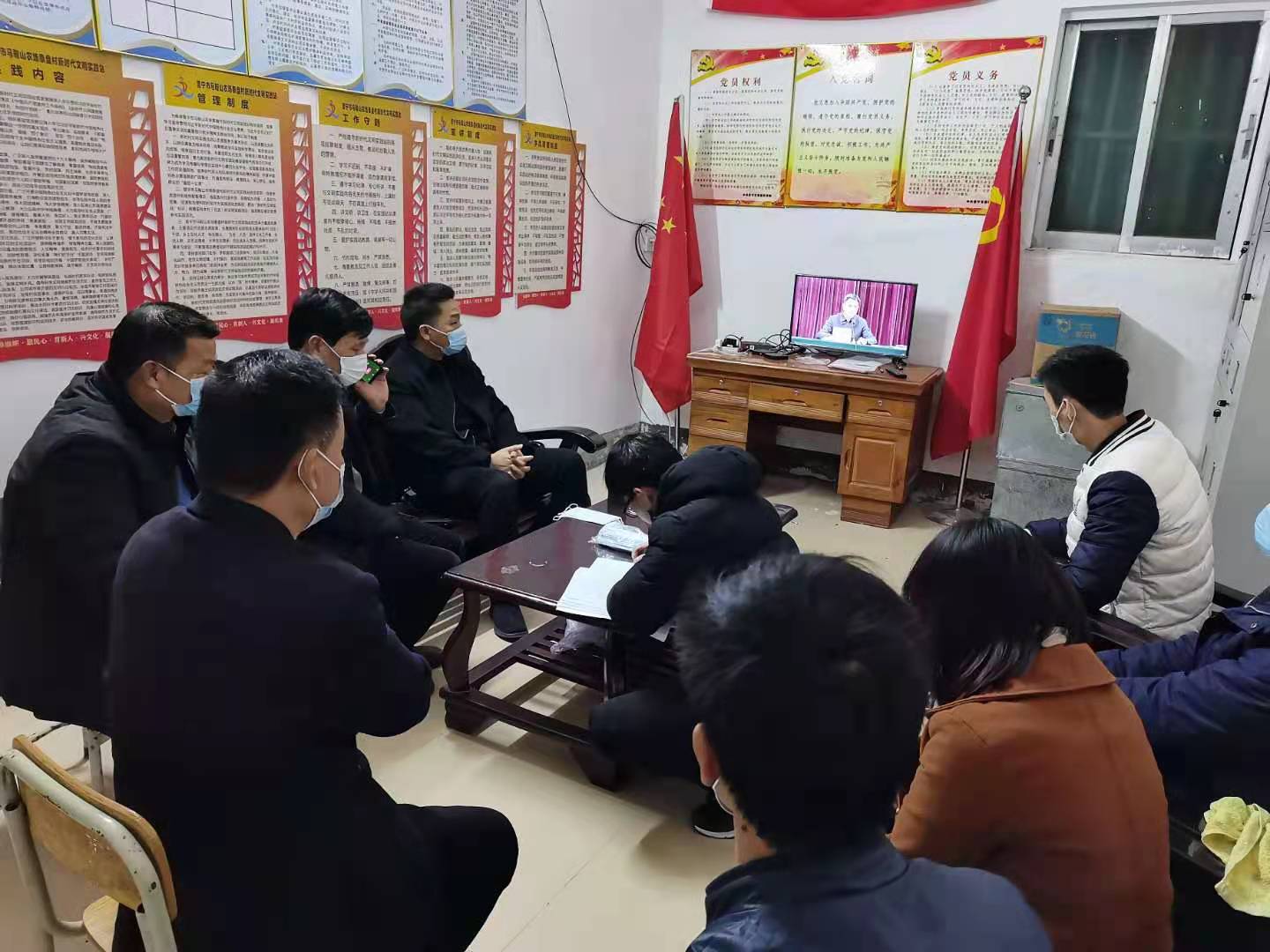 两委班子视频会议视频学习防疫工作