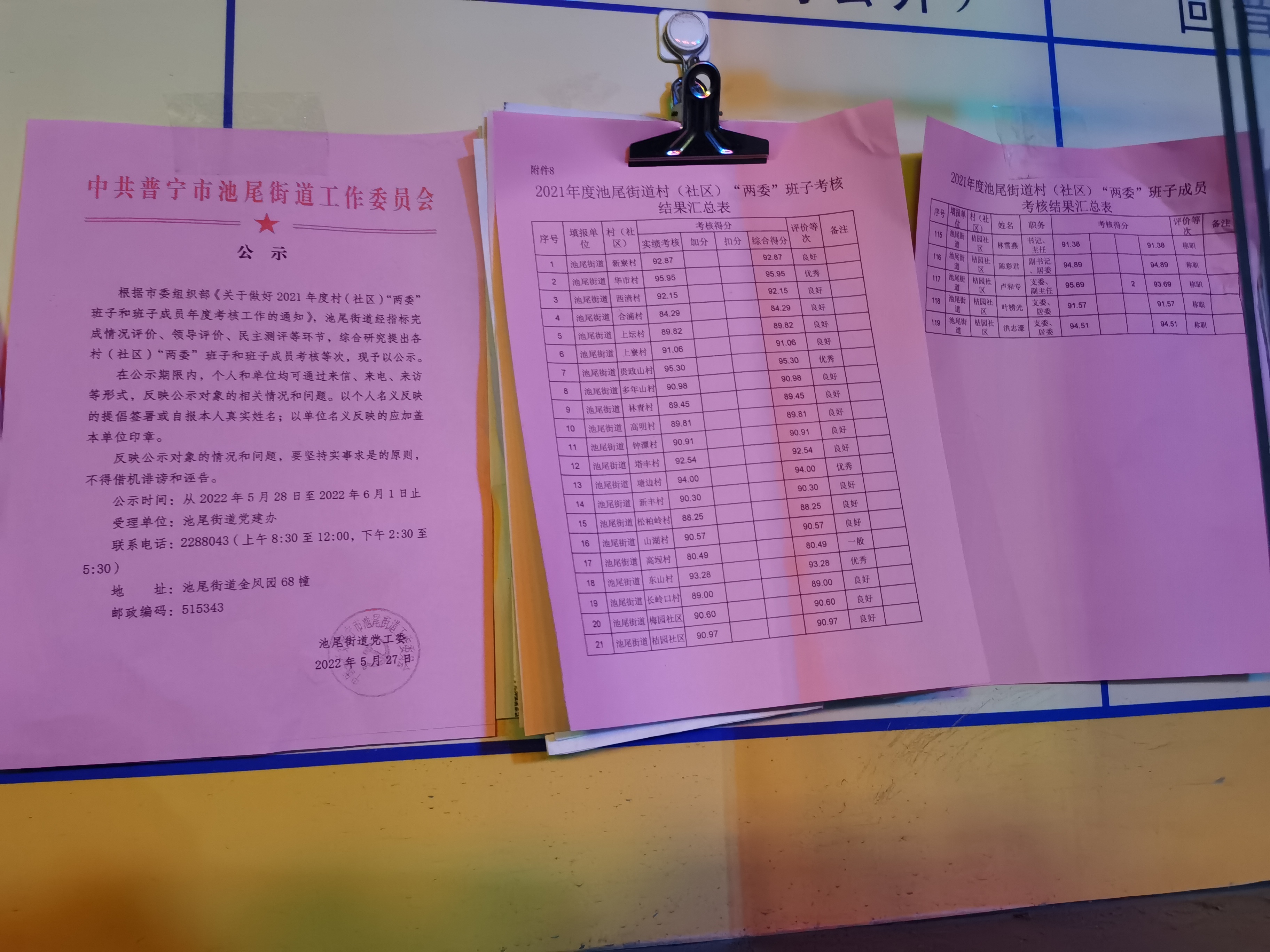 2021年度池尾街道村(社区)“两委”班子考核结果公示