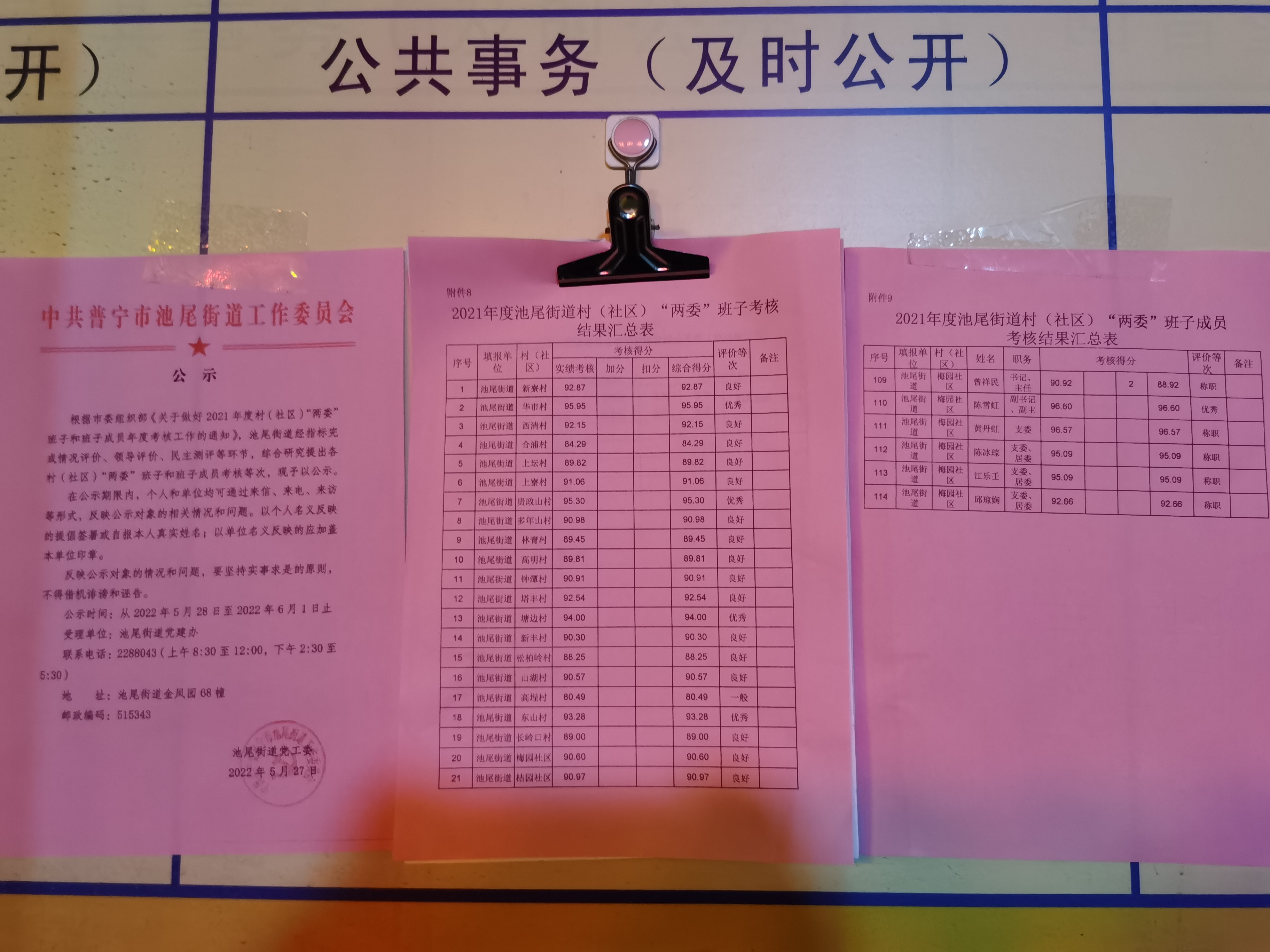 2021年度池尾街道村(社区)“两委”班子考核结果公示