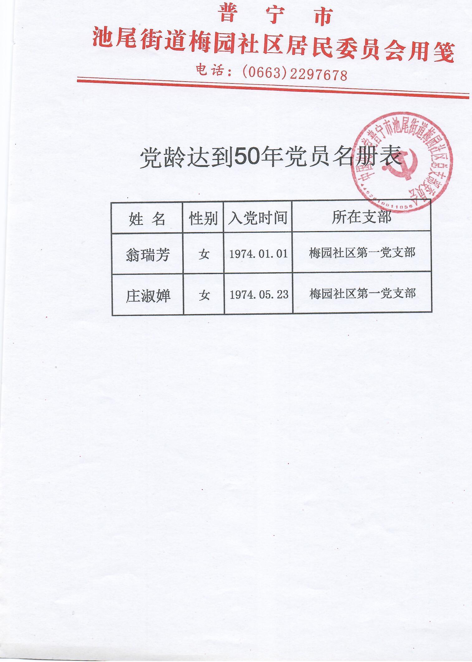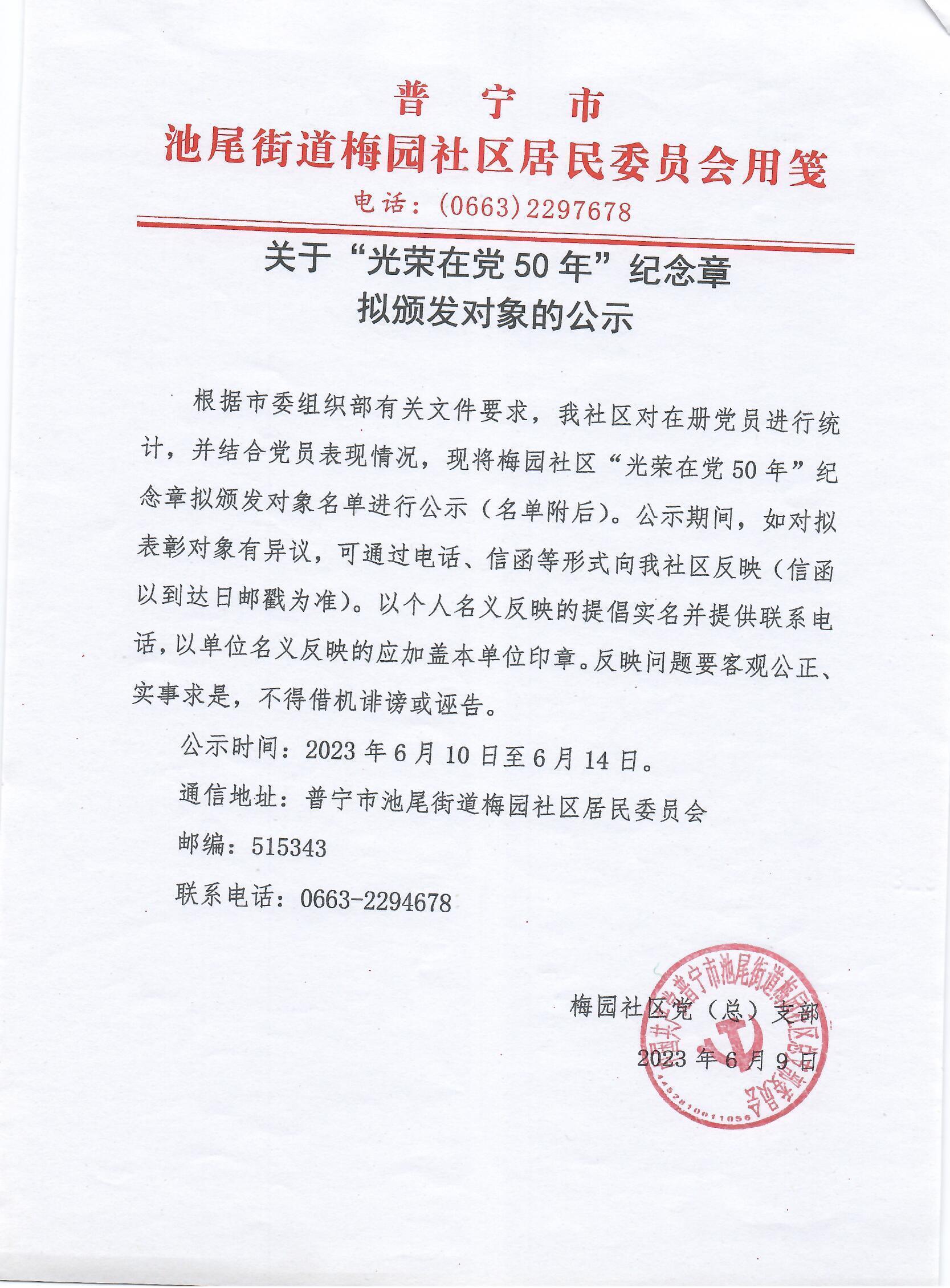 关于“光荣在党50年“纪念章拟颁发对象公示