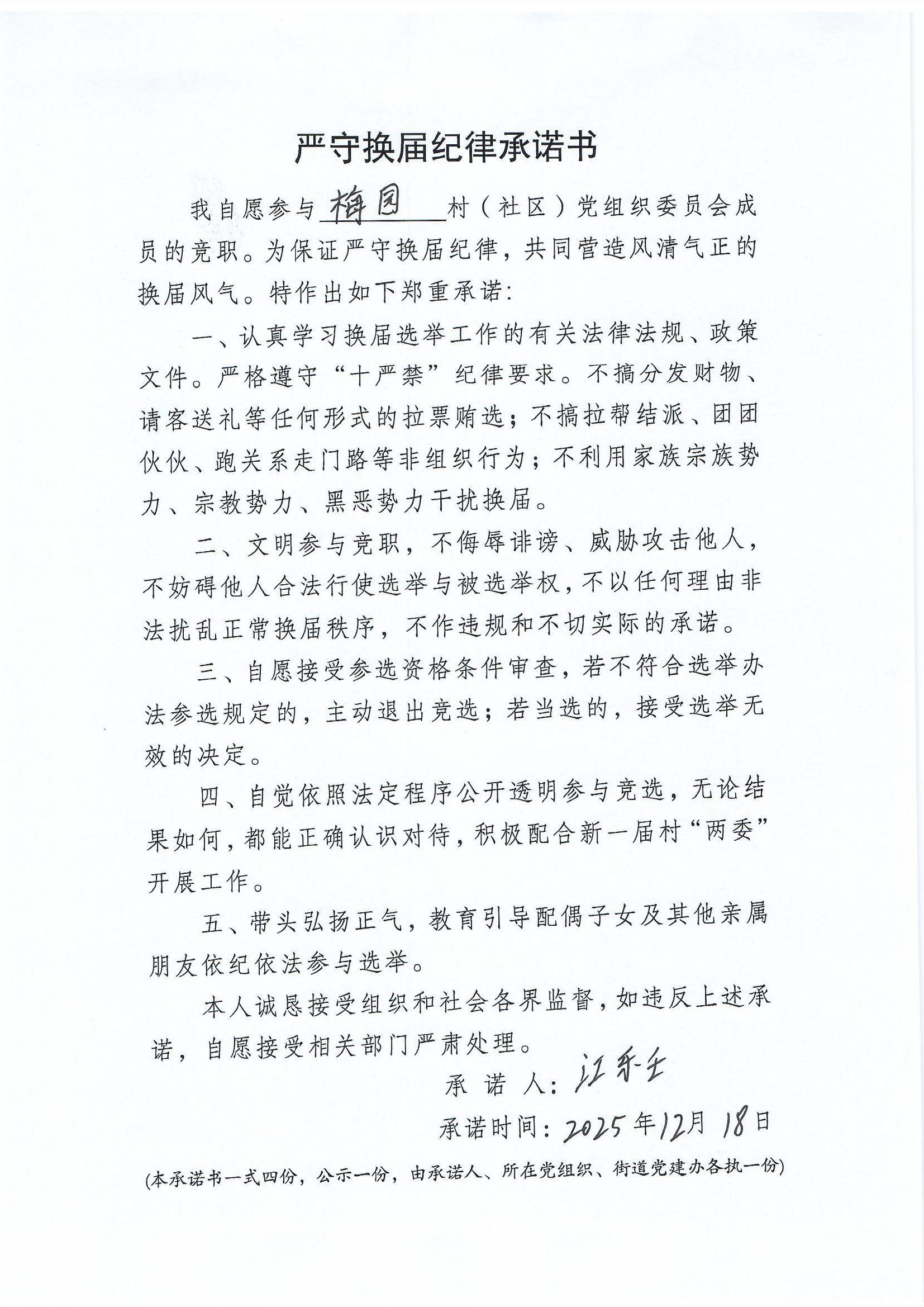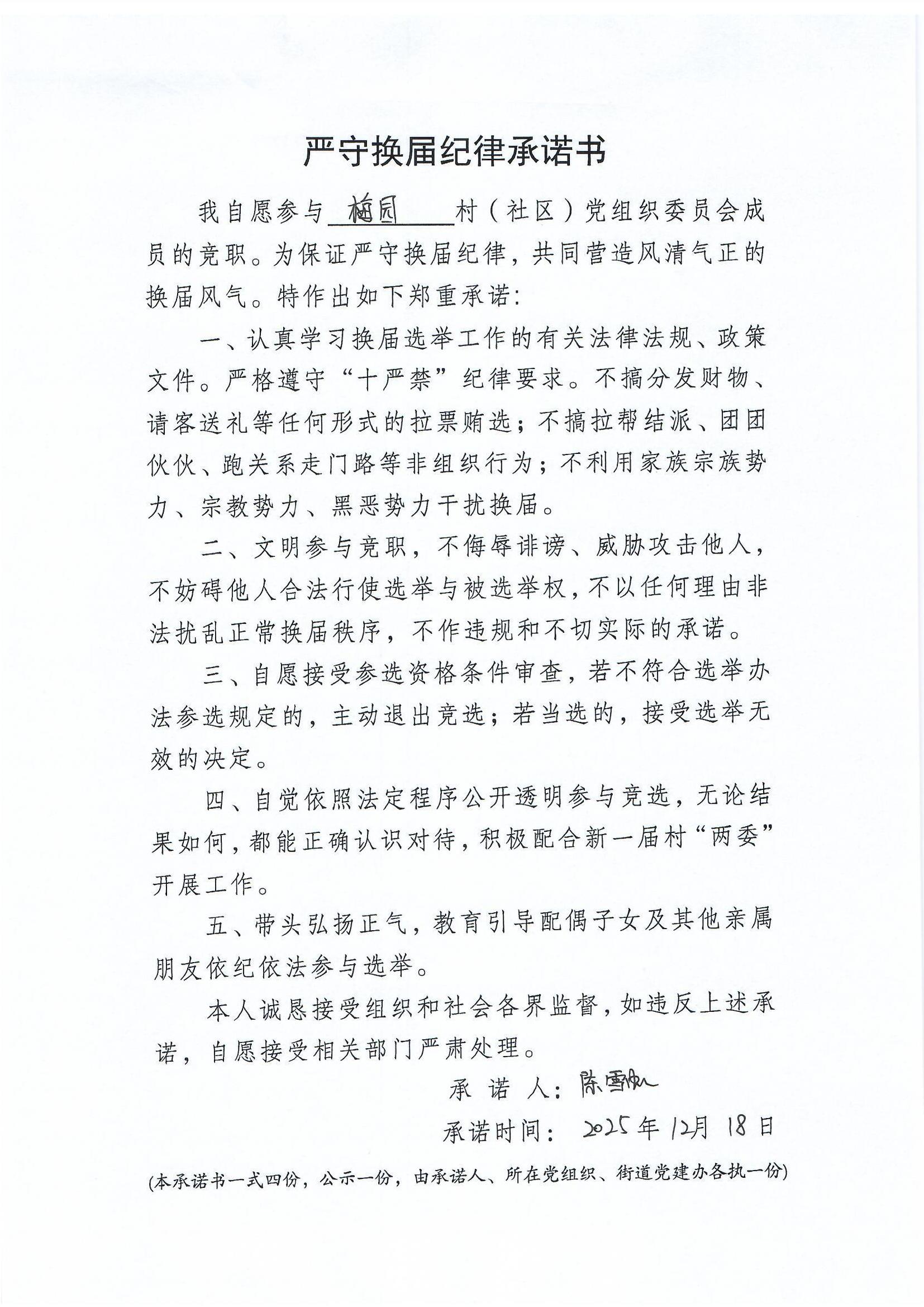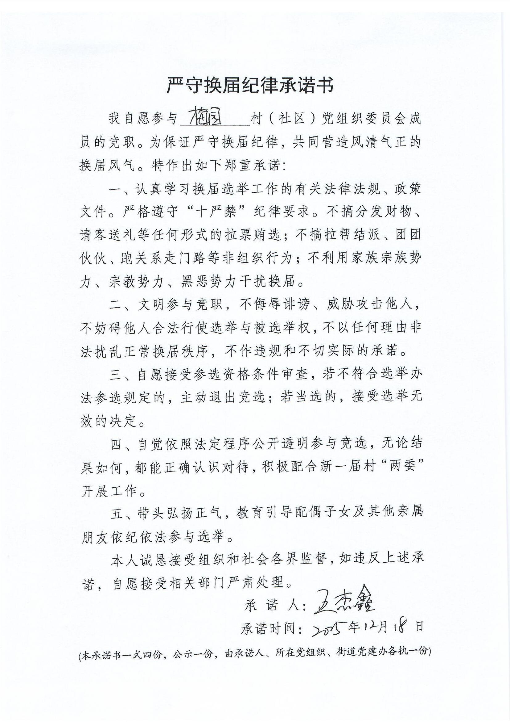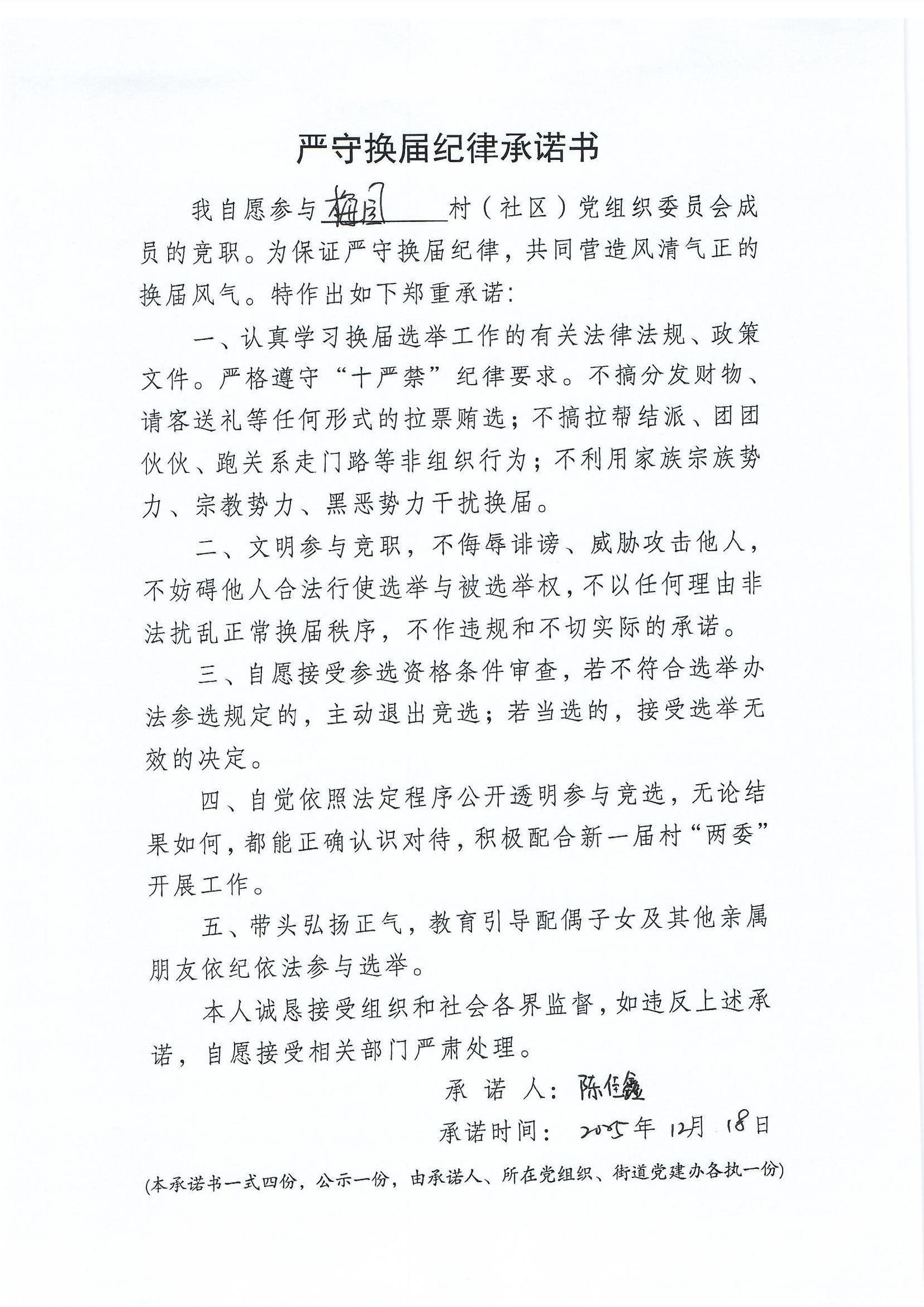 严守换届纪律承诺书
